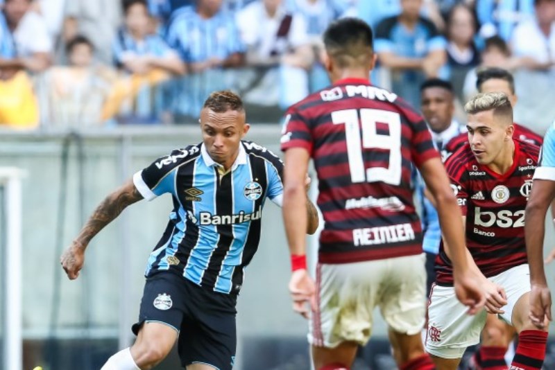 Mesmo jogando fora de casa e poupando alguns dos titules, o Flamengo foi quem teve as melhores oportunidades do primeiro tempo. Aos 19, após boa tabela com Arrascaeta, Gabriel Barbosa saiu de cara para o goleiro, mas bateu fraco, e Paulo Victor fez boa defesa. O Grêmio deu a resposta pouco tempo depois, quando Cortez recebeu dentro da área e finalizou com força, mas Diego Alves fez a intervenção em dois tempos.