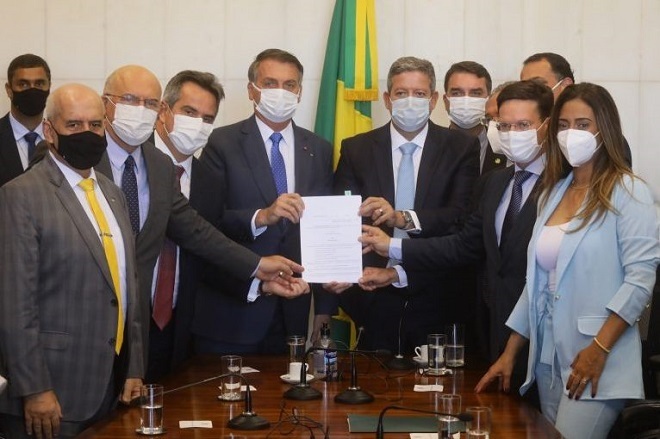 O presidente Jair Bolsonaro entregou nesta segunda-feira ao presidente da Câmara dos Deputados, Arthur Lira (PP-AL), a Medida Provisória que reformula o programa Bolsa Família, ampliando o valor e o número de beneficiados, e a proposta de emenda constitucional que prevê o parcelamento de precatórios a serem pagos pela União. O novo programa se chama Auxílio Brasil e seu valor será definido até setembro.
