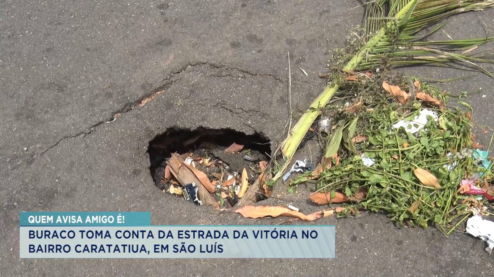 O repórter Sérgio Fernandez foi até o bairro Caratatiua, em São Luís, mostrar um buraco que está se formando na Estrada da Vitória, próximo da sede da Escola de Samba Turma da Mangueira. De acordo com os moradores, a situação vem trazendo uma série de transtornos para quem mora ou precisa passar pelo local diariamente.