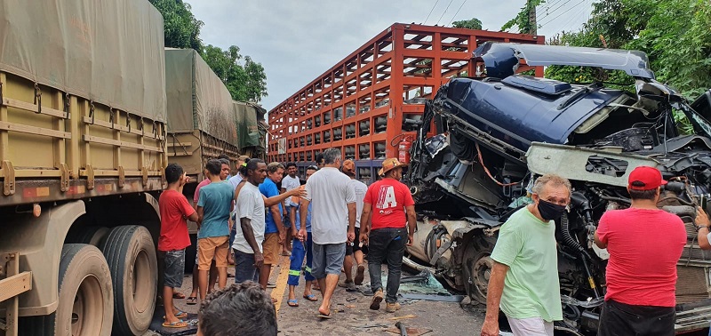 Uma colisão traseira envolvendo dois veículos de carga deixou a rodovia BR-135 bloqueada por várias horas no km 303, trecho entre Peritoró e Presidente Dutra/MA.