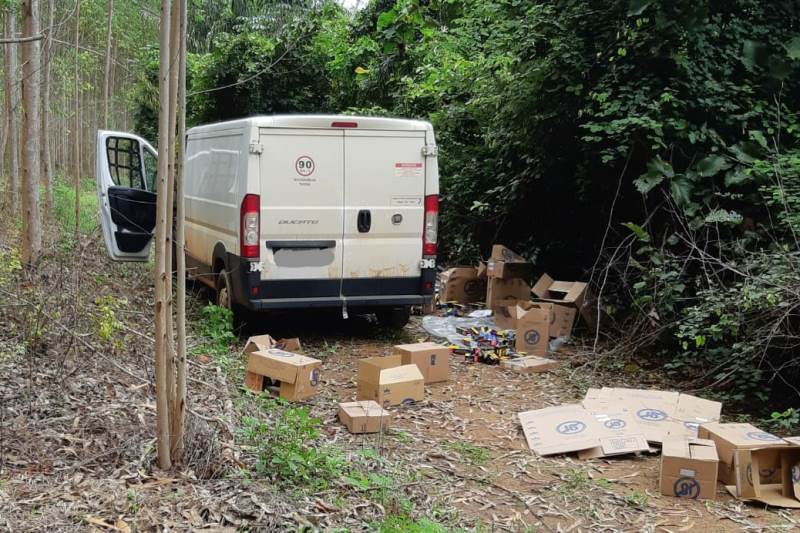 A equipe foi até o local e verificou que cerca de cinco indivíduos encapuzados estavam tirando a carga de um furgão e colocando em outros dois veículos.