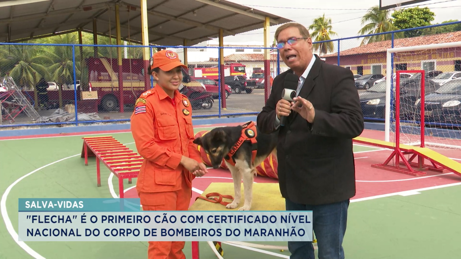 A Flecha, uma cadela da raça Border Collie, desde 2020 integra o Corpo de Bombeiros Militar do Maranhão (CBMMA) e já participou de missões de resgate nas cidades de Petrópolis, no Rio de Janeiro, e Pernambuco, em Recife.