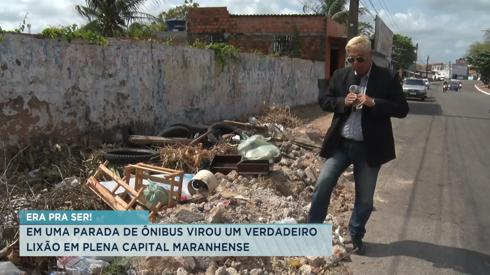 Passageiros do transporte público de São Luís estão reclamando da situação de uma parada de ônibus que foi tomada por lixo e entulho na Avenida Senador Vitorino Freire, no bairro Vila Passos.