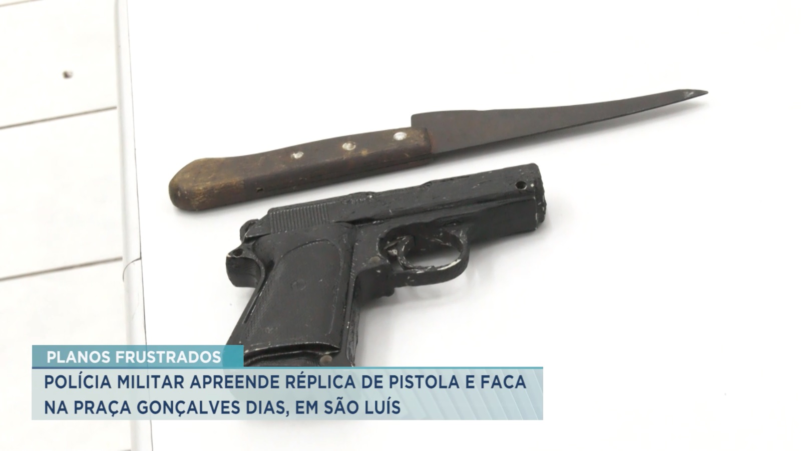Policiais militares realizavam rondas na área da praça Gonçalves Dias, centro de São Luís, quando foram informados por populares sobre duas pessoas em atitude suspeita. Na abordagem foram encontradas uma faca e uma arma de fogo falsa.