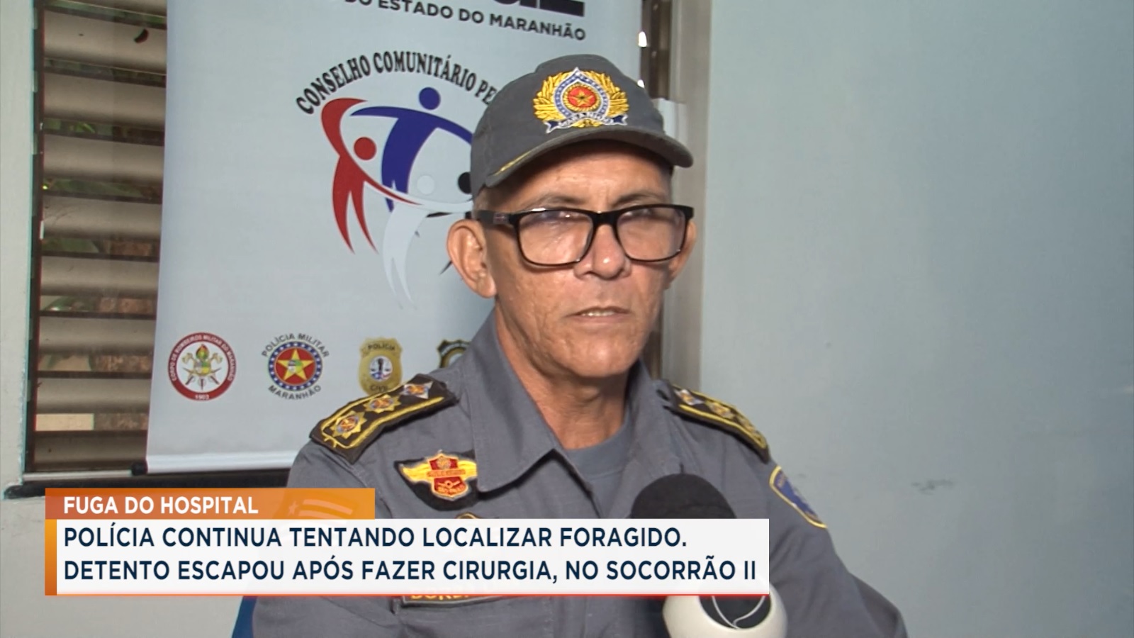 A Polícia Militar do Maranhão (PMMA) está em busca de Juraci Araújo de Jesus, 43 anos. Ele fugiu do Hospital Doutor Clementino Moura, o Socorrão II, após uma cirurgia. De acordo com a Polícia, Juraci fingiu que ia tomar banho, entrou no banheiro, ligou o chuveiro para enganar os policiais que estavam vigiando do lado de fora e, ainda com uma bolsa de colostomia, fugiu por uma pequena janela.