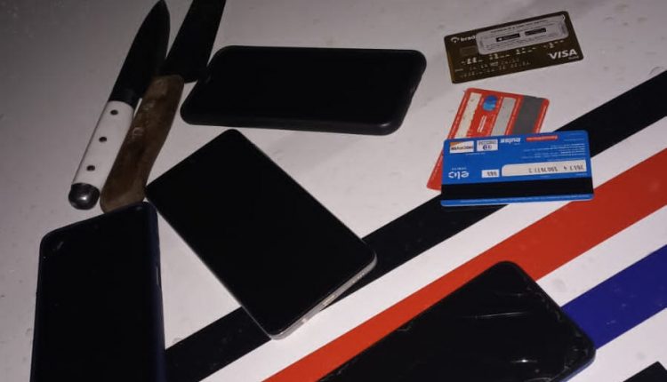 Com eles, os policiais apreenderam ainda um simulacro de arma de fogo e duas facas. O motorista estava no veículos com os criminosos.