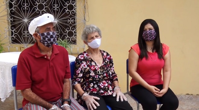 Um casal, juntos há mais de 60 anos, celebram a vitória após se recuperarem do novo coronavírus, em São Luís. Eles foram infectados no início de abril.