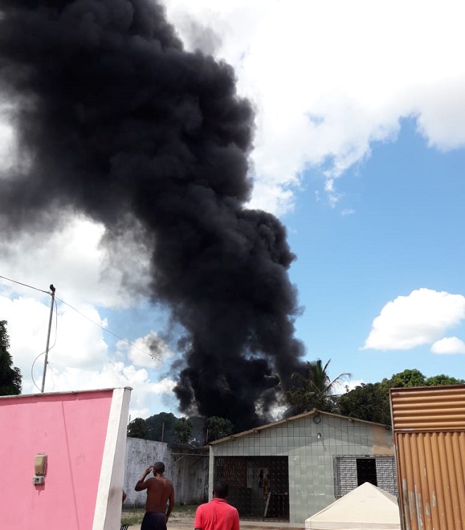 Um incêndio de grandes proporções atingiu um depósito no bairro da Divinéia, em São Luís, no início da tarde desta sexta-feira (7).