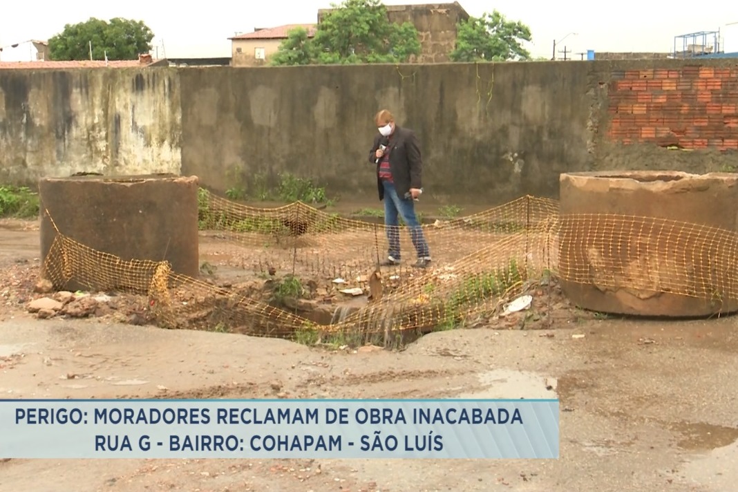 Moradores da Rua G, localizada no bairro Cohapam, em São Luís, reclamam de uma obra inacabada e que está oferecendo perigo para quem reside ou passa pelo local.