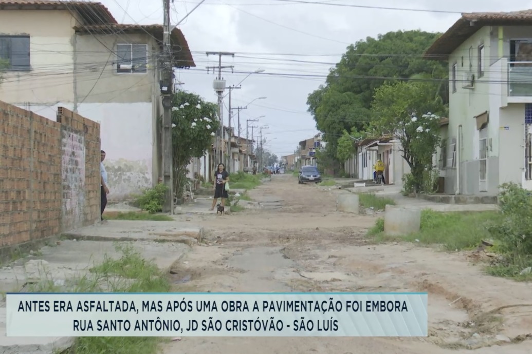 Os moradores da Rua Santo Antônio, Jardim São Cristóvão chamaram a equipe de reportagem do balanço Geral-MA para denunciar uma obra inacabada. Segundo eles, o local até que estava bom, era asfaltado, porém, há alguns meses foi iniciado um serviço de tubulação, calçadas foram quebradas e a rua ficou quase intrafegável, nem o carro da coleta de lixo consegue mais passar. Os próprios moradores jogaram entulhos para ter certa acessibilidade.