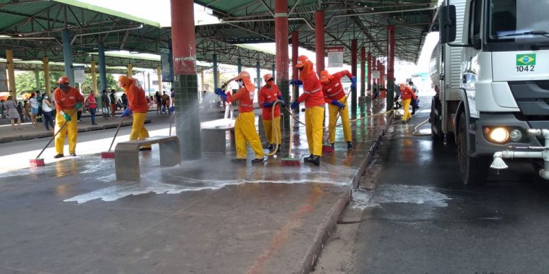 Desde que as medidas de isolamento social foram flexibilizadas e, consequentemente, ocorreu o aumento do fluxo de pessoas nas ruas, a Prefeitura de São Luís vem intensificando a higienização de espaços públicos da capital. A limpeza tem como foco os terminais de integração, paradas de ônibus, feiras e mercados, em ações determinadas pelo prefeito Edivaldo Holanda Junior, que dá prosseguimento às medidas de combate à Covid-19.