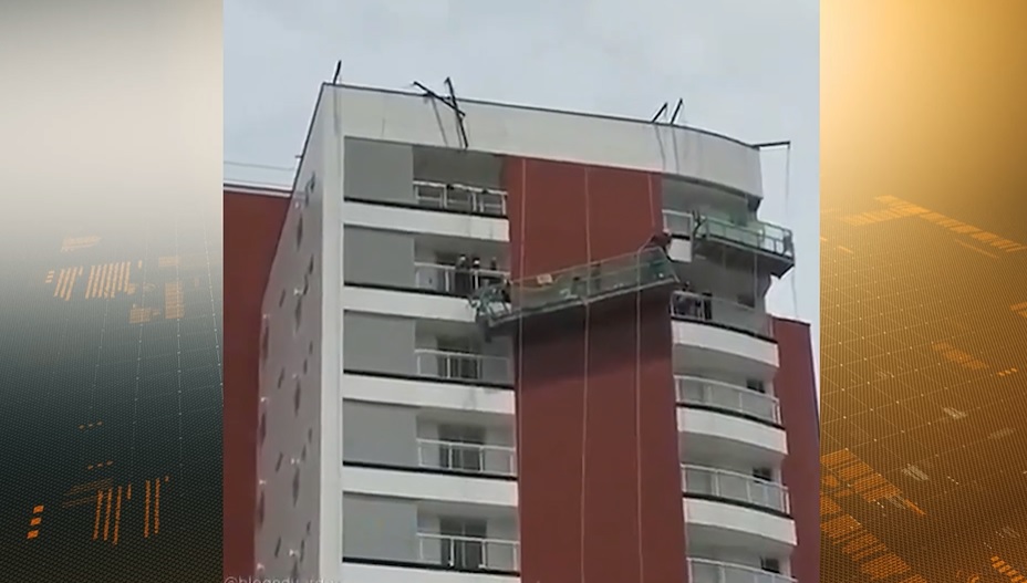 Um andaime, usado na reforma de um prédio que fica em uma área nobre da capital maranhense, acabou ficando bastante inclinado, colocando os trabalhadores em risco.